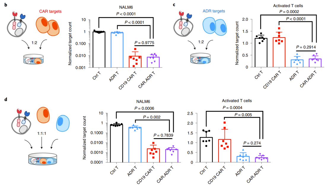 In addition, researchers have demonstrated in vitro experiments that CD19 co-expressing ADR CAR After co-culture of T (CAR ADR T) cells with target cell NALM6 and activated allogeneic T cells, they all maintained their respective active functions (Figure 4).