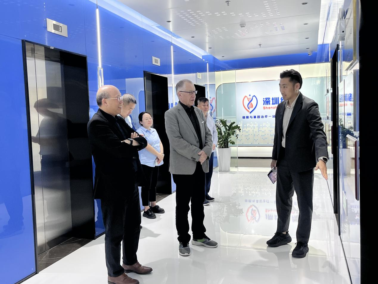 On November 10, Professor Rupert Josef Handgretinger, an internationally renowned pediatric oncology expert, member of the German Academy of Sciences, and former director of the Children's Hospital of Tübingen University, along with Professor Chen Zhifeng, former director of the Department of Hematology at Hong Kong Children's Hospital, honorary clinical professor of the Department of Child and Adolescent Sciences at the University of Hong Kong's Faculty of Clinical Medicine, and consultant physician at the University of Hong Kong, visited Shenzhen Cell Valley for an exchange. The visit was warmly received by Professor Shi Yuanyuan, Chairman of Cell Valley, Professor Wang Jianxun, Chief Scientist, Vice President Tang Xiaomeng, Dr. Fu Yuchen, Assistant to the Chairman, Dr. Feng Yaru, Director of Production, Dr. Zhang Xuefeng, Director of Quality Management, Dr. Zhao Lijun, Head of the R&D Department, and Dr. Zhu Wenxiang, Senior R&D Scientist. Both parties engaged in in-depth discussions on international collaboration in the field of cell and gene therapy, exploring the global application of cell therapy.