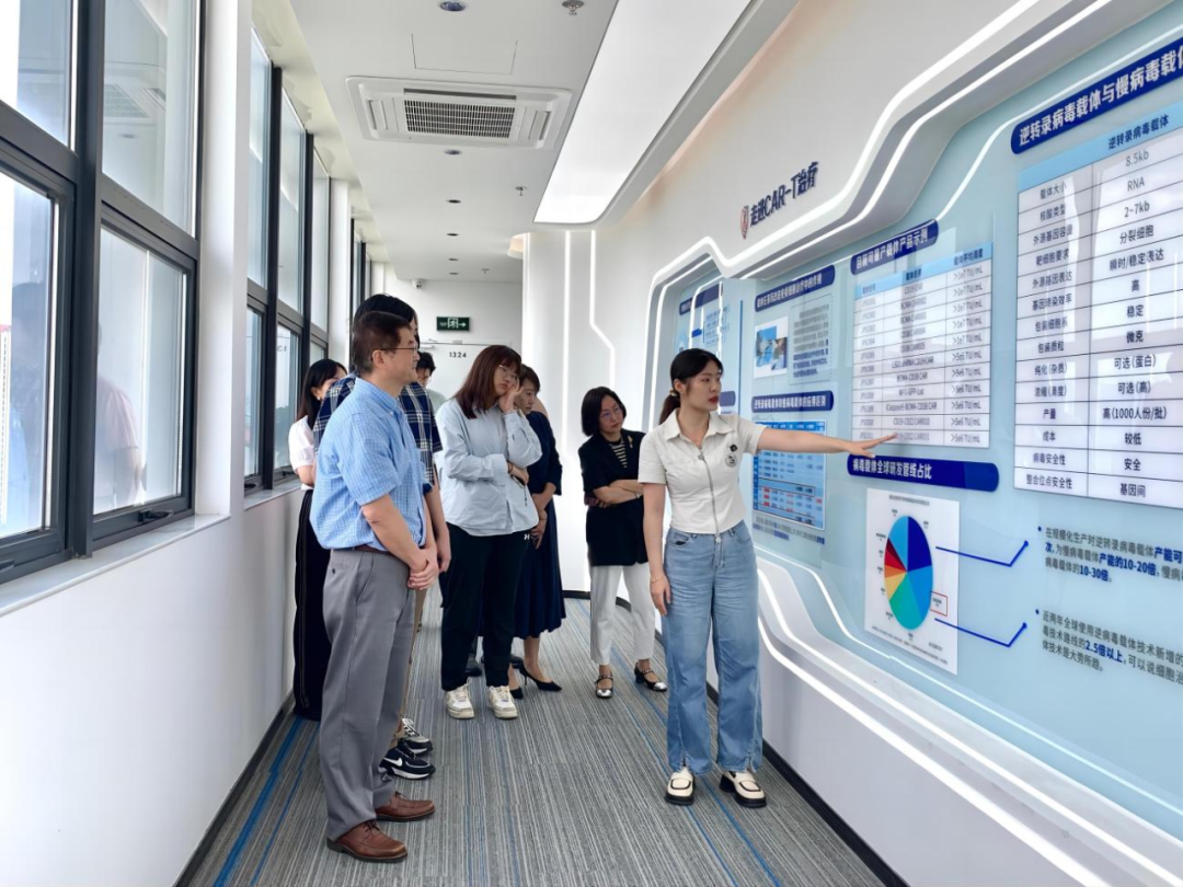 陈涛教授一行在赵丽君部长的陪同下参观了智慧展厅,对深圳凯发K8的战略定位、创始人团队、开展历程概览以及核心技术专利概况有了初步分析。随后,顺利获得实地参观我司的GMP级生产研发实验室以及质量管理实验室,深入探讨了我司在核心技术——逆转录病毒载体制备与细胞产品生产工艺上的独特竞争优势,并对质量管理方面所实施的全流程可追溯性严格监控体系表示了高度认可。