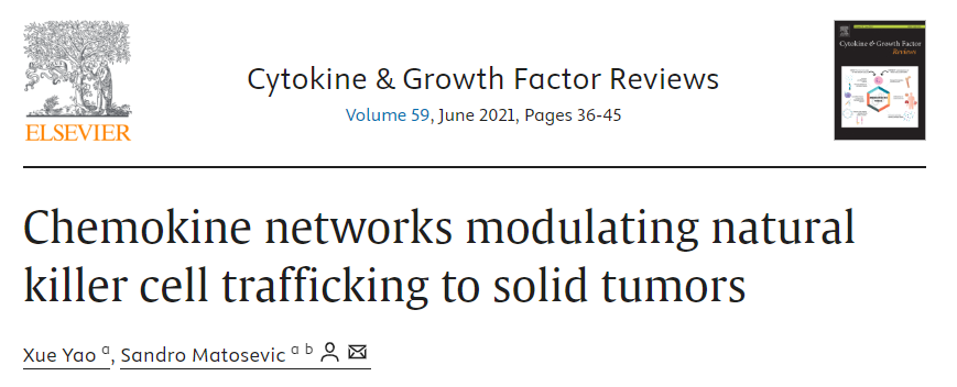 Cytokine and Growth Factor Reviews上发表了一篇综述“Chemokine networks modulating natural killer cell trafficking to solid tumors”,文章中介绍了与NK细胞相关的趋化因子受体,包括CCR2、CCR5、CCR7、CXCR3和CX3CR1,以及改善NK细胞瘤内浸润的策略。简单介绍这篇综述的主要内容如下: